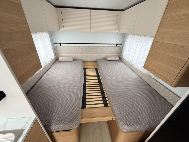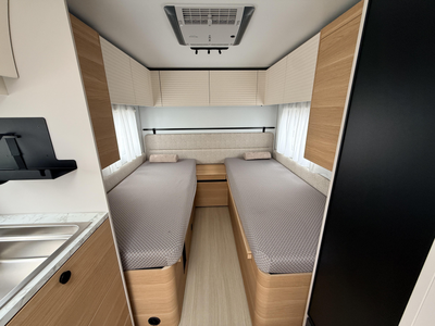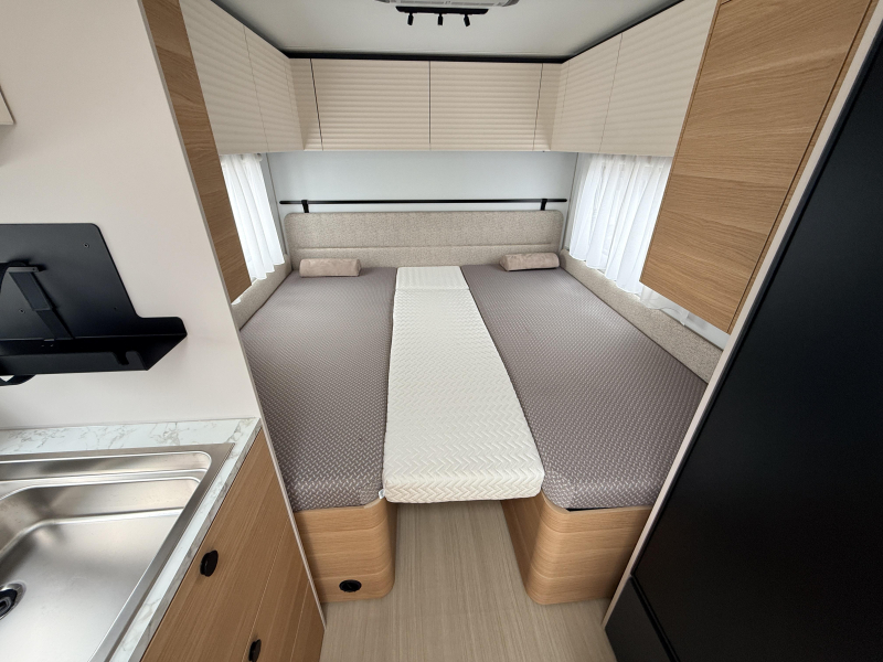 De twee aparte bedden waarover de caravan beschikt, bieden een gemakkelijke instap. Om het u aan niets te laten ontbreken, zijn de bedden voorzien van zowel lattenbodems als traagschuimmatrassen. Deze caravan beschikt over een badkamer. Hierin bevindt zich een wastafel en ingebouwd cassettetoilet. In de caravan kunt u ook douchen. Er bevindt zich een doucheruimte naast het slaapgedeelte.