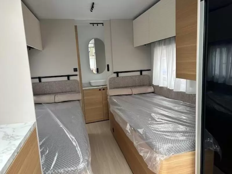 In de 2 aparte bedden in de caravan heeft ieder zijn eigen slaapplek. In de badkamer kunt u zich lekker opfrissen bij de wastafel. Verder is er ook een cassettetoilet ingebouwd. Ook is de caravan uitgerust met een douchegelegenheid, zodat u aan boord kunt douchen.