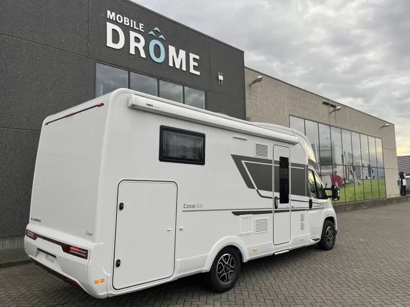 In deze camper is ook een hordeur ingebouwd. Daardoor zult u in deze camper veel minder last van insecten hebben. Verder ontbreekt het u aan niets, want de afwerking van deze Adria Coral Axess Benelux Edition bestaat ondermeer uit een vaste afvalwatertank, indirecte verlichting, leeslampjes, een buitenlamp en lichtmetalen velgen.