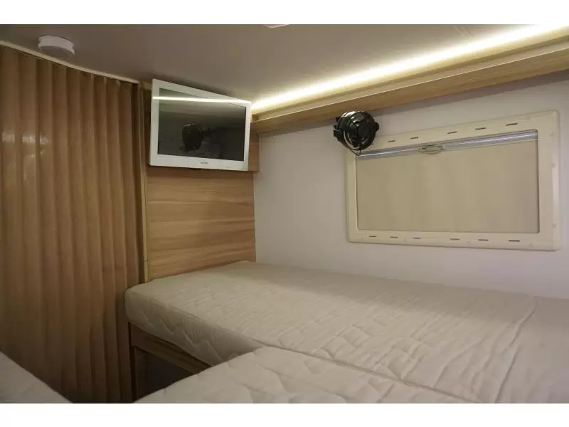 Slapen doet u op de 2 aparte bedden, die borg staan voor extra ruimte en een makkelijke instap. De badkamer biedt wasgelegenheid in de vorm van een wastafel. Tevens is er een ingebouwde cassettetoilet aanwezig. Er is bovendien een doucheruimte in de camper, zodat u van uw eigen douche gebruik kunt maken.
