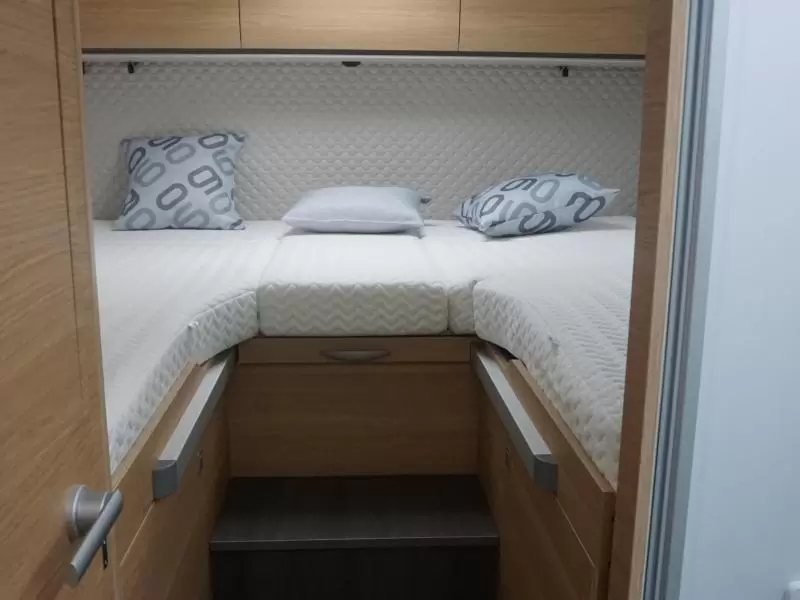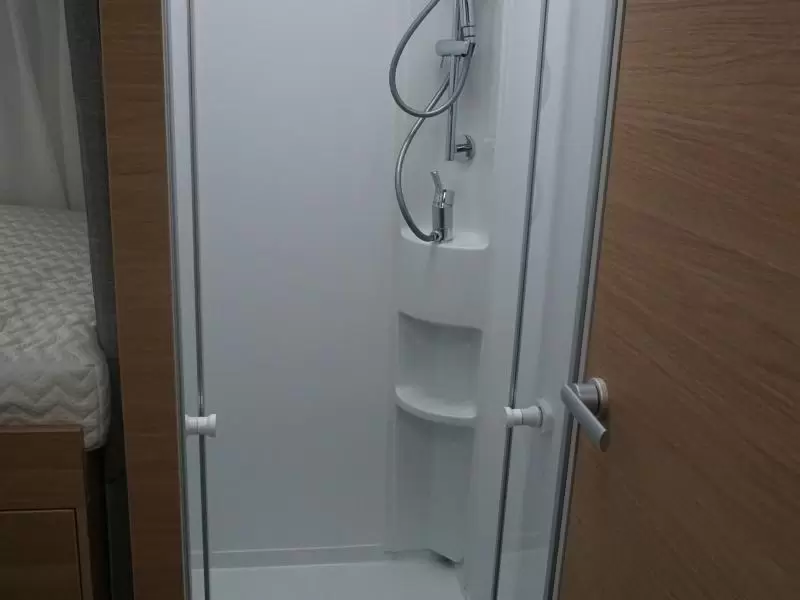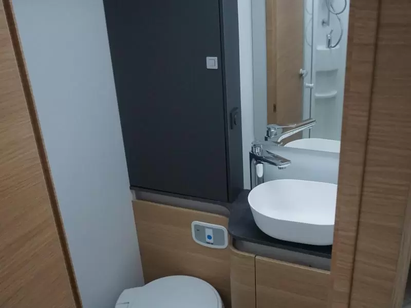 Het hefbed bespaart enorm veel ruimte en biedt plaats aan 2 personen. De aparte bedden bieden een makkelijke instap en een slaapgelegenheid voor 2 personen. In de comfortabele badkamer van deze camper vindt u behalve een wastafel ook een ingebouwd cassettetoilet. Er is bovendien een doucheruimte in de camper, zodat u van uw eigen douche gebruik kunt maken.