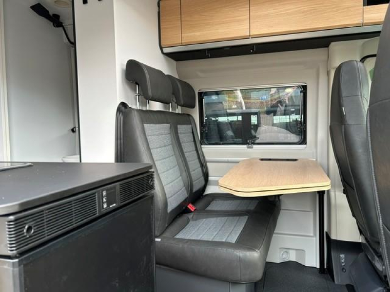 U vindt in de camper onder meer een standaardzit, die naar wens kan worden omgebouwd tot slaapgelegenheid. Het keukenblok is centraal in de camper geplaatst. De boiler, die in de camper is ingebouwd, voorziet u snel van warm water. De koelkast met vriescompartiment is ruim genoeg voor al uw etenswaren.