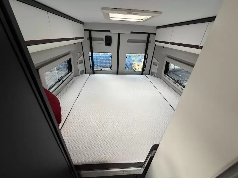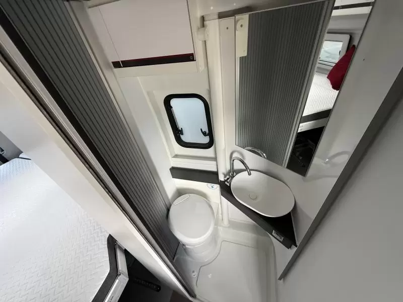 In de camper vindt u onder meer een ruim tweepersoons bed dat in de lengte is geplaatst. Een handige ruimtewinner is het tweepersoons hefbed, dat zich boven de zitgroep bevindt. Met het bovenbed beschikt de camper over een handige extra slaapplaats. Dankzij de traagschuimmatrassen en lattenbodems kunt u genieten van extra comfortabele bedden. Deze camper beschikt over een badkamer. Hierin bevindt zich een wastafel en ingebouwd cassettetoilet. Wilt u zich onderweg opfrissen? Dat kan gezien de camper voorzien is van een douchecabine.