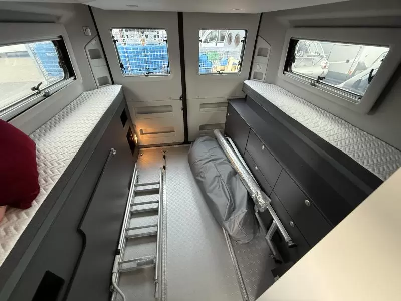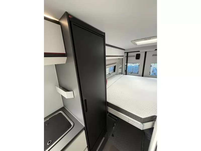 U zult in deze camper dankzij de hordeur geen last van vliegen en muggen hebben. Het ontbreekt zelfs de veeleisende kampeerder aan niets; de vaste afvalwatertank, de indirecte verlichting, de leeslampjes en de buitenlamp zijn een kleine greep uit de vele details die deze camper zeer de moeite waard maken.