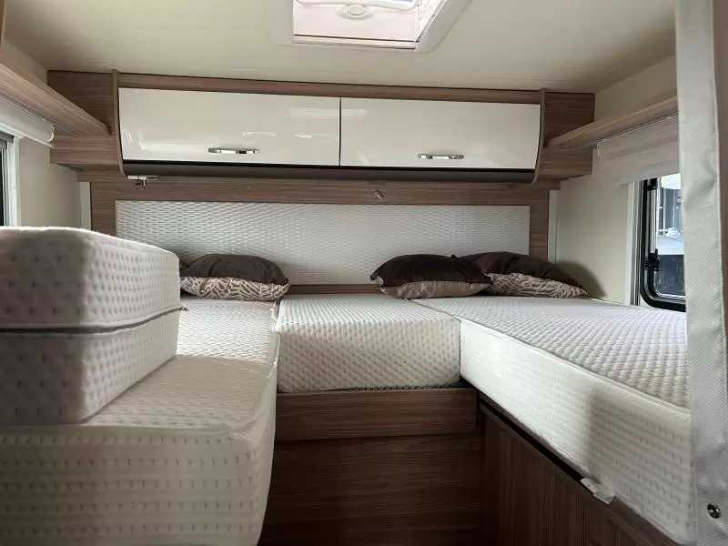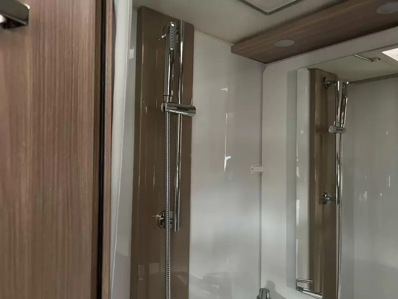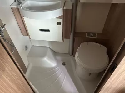 De aparte bedden bieden een makkelijke instap en een slaapgelegenheid voor 2 personen. U kunt zich heerlijk opfrissen bij de wastafel in de badkamer. Daar is ook een cassettetoilet ingebouwd. Er is bovendien een doucheruimte in de camper, zodat u van uw eigen douche gebruik kunt maken.