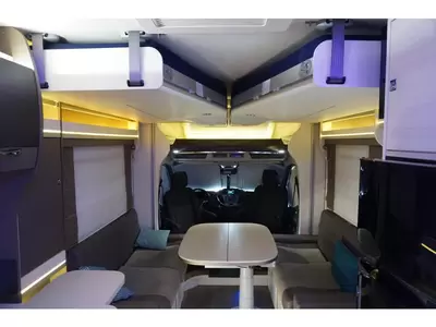 De centraal geplaatste middendinette biedt volop gelegenheid om gezellig samen te zitten. Centraal in de camper bevindt zich de complete middenkeuken. De 10 liter boiler, die in de camper is ingebouwd, voorziet u snel van warm water. De XL koelkast (175 liter) met vriesvak biedt voldoende ruimte voor heel uw voorraad.