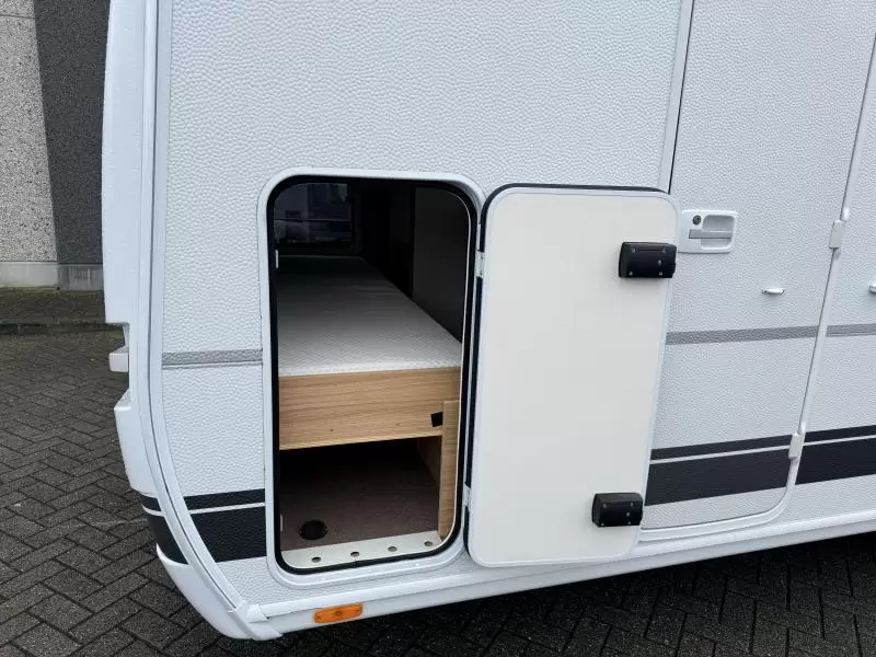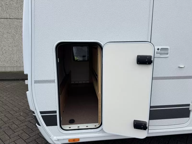 De caravan heeft een hordeur, zodat u in de caravan geen last van muggen en andere insecten heeft. De caravan is voorzien van een stabilisator. Hierdoor wordt het weggedrag aanzienlijk verbeterd.