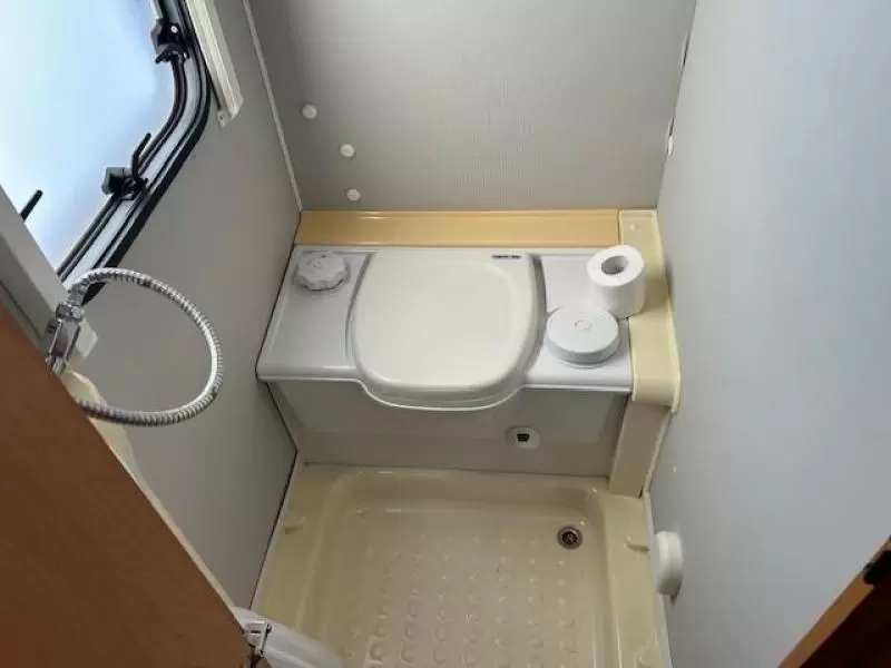 De caravan is uitgerust met een Frans bed, een in de lengte geplaatst tweepersoons bed. Het dwars geplaatste bed biedt voldoende ruimte voor 2 personen. Dankzij de traagschuimmatrassen en lattenbodems op de bedden kunt u genieten van een extra comfortabele ligging. In de badkamer vindt u niet alleen een wastafel, maar ook een ingebouwd cassettetoilet. In de caravan kunt u ook douchen. Er bevindt zich een doucheruimte naast het slaapgedeelte.