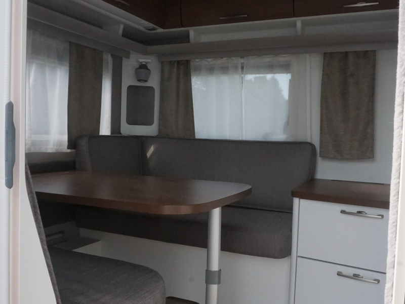 De handige standaardzit biedt niet alleen de nodige ruimte om te zitten, maar kan ook als slaapgelegenheid worden gebruikt. De luxe en compleet uitgevoerde keuken van deze Eriba caravan heeft onder andere een afzuigkap om overtollige warmte en kooklucht af te kunnen voeren. Er is een 5 liter boiler aanwezig, die u van warm water voorziet. De koelkast met vriescompartiment is ruim genoeg voor al uw etenswaren.