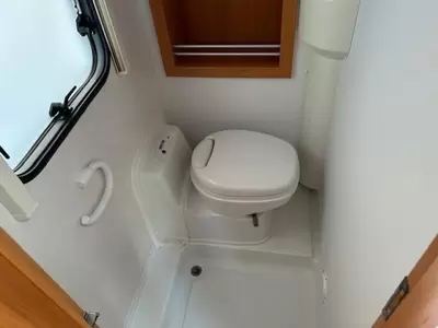 Het Franse bed, dat in de lengte is geplaatst, biedt volop ruimte voor 2 personen. De badkamer biedt gelegenheid om u aan de wastafel op te frissen en er is tevens een cassettetoilet.
