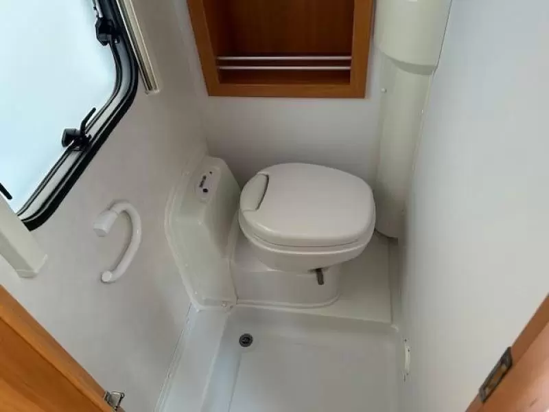 Het grote dakluik van de caravan zorgt voor extra veel lichtinval en een goede ventilatie. Voor een goede verdeling van de verwarmde lucht is de caravan voorzien van een circulatiesysteem.