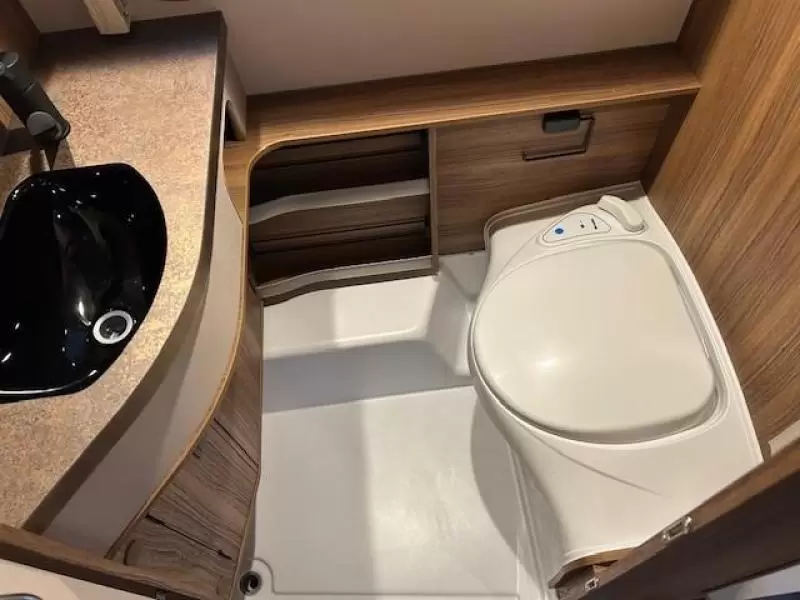 Het dwars geplaatste bed biedt voldoende ruimte voor 2 personen. In de badkamer kunt u zich lekker opfrissen bij de wastafel. Verder is er ook een cassettetoilet ingebouwd.