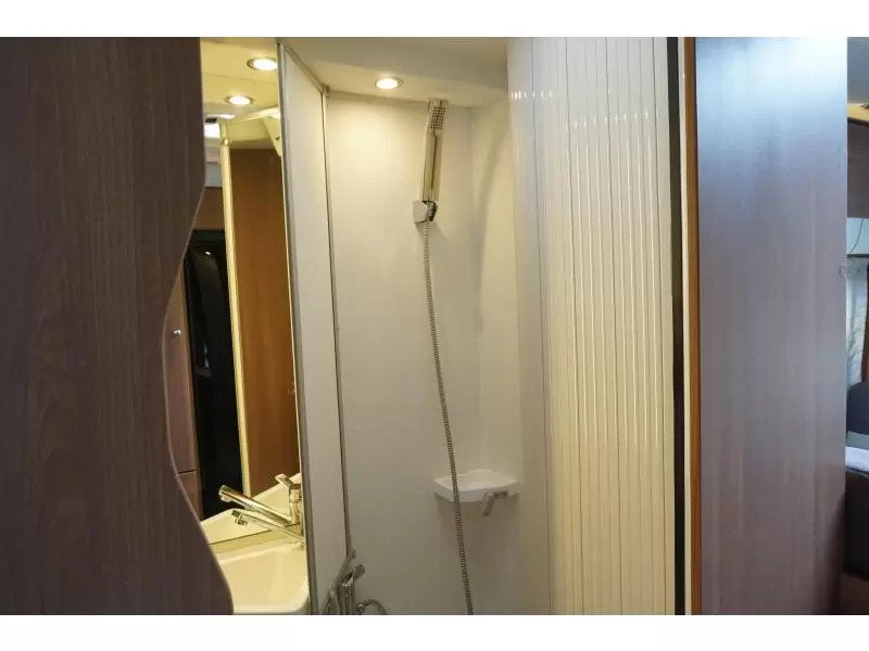 Middels het bovenbed heeft de camper een extra, plaatsbesparende slaapplek. U kunt zich heerlijk opfrissen bij de wastafel in de badkamer. Daar is ook een cassettetoilet ingebouwd. Ook is de camper uitgerust met een douchegelegenheid, zodat u zich ook onderweg heerlijk kunt opfrissen.
