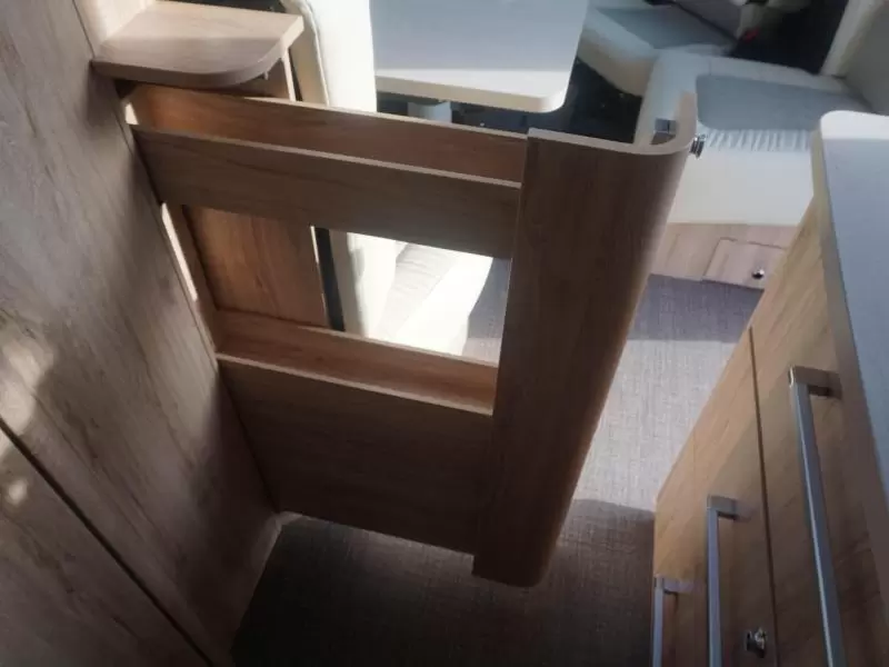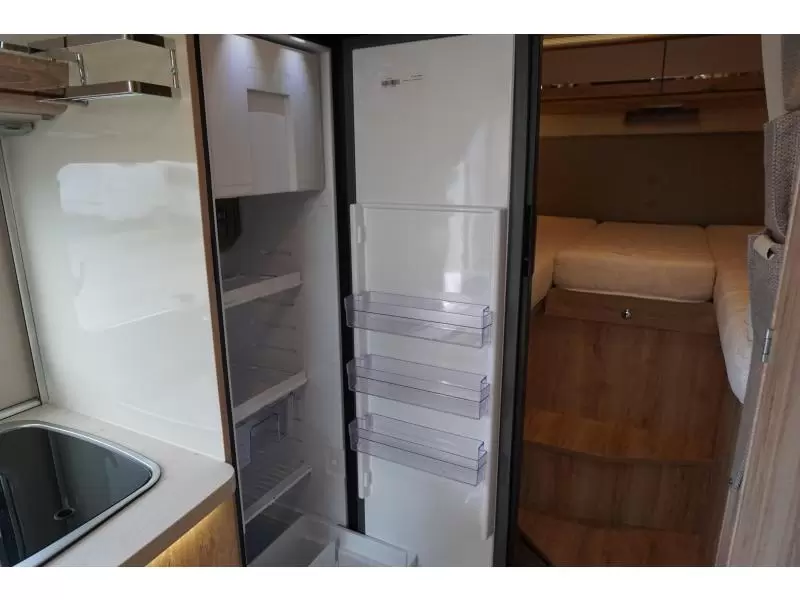 De camper is voorzien van een handige L-zit voor een sfeervol samenzijn. De keuken is in het midden van de camper gemonteerd. Voor een snelle toevoer van warm water is er een boiler aanwezig. De koelkast met vriescompartiment is ruim genoeg voor al uw etenswaren.