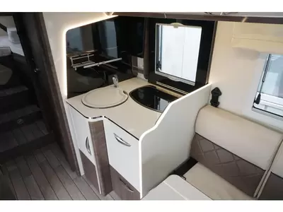 De keuken is in het midden van de camper gemonteerd. Er is een boiler aanwezig, die u van warm water voorziet. Om uw etenswaren op te bergen is er een koelkast met vriescompartiment ingebouwd.