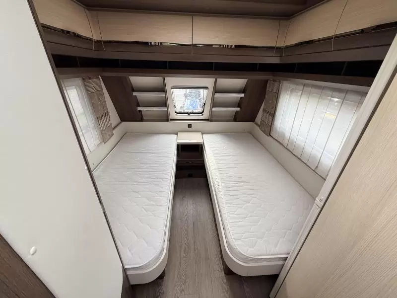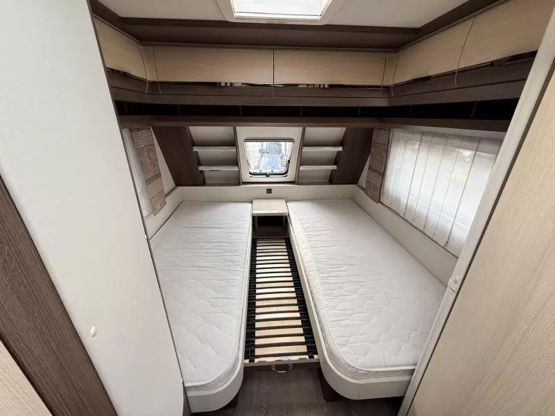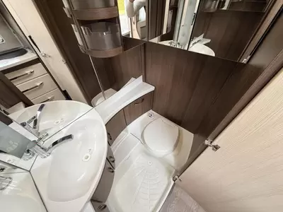 De aparte bedden waarmee de caravan is uitgerust bieden een ruime slaapplek voor 2 personen. U kunt in deze caravan genieten van een weldadige nachtrust dankzij de lattenbodems en pocketveringsmatrassen op de bedden. Ook zijn de enkele bedden makkelijk en snel om te bouwen door de uittrekbare lattenbodem zodat u er een heel groot bed van kunt maken. Deze caravan beschikt over een badkamer. Hierin bevindt zich een wastafel en ingebouwd cassettetoilet.