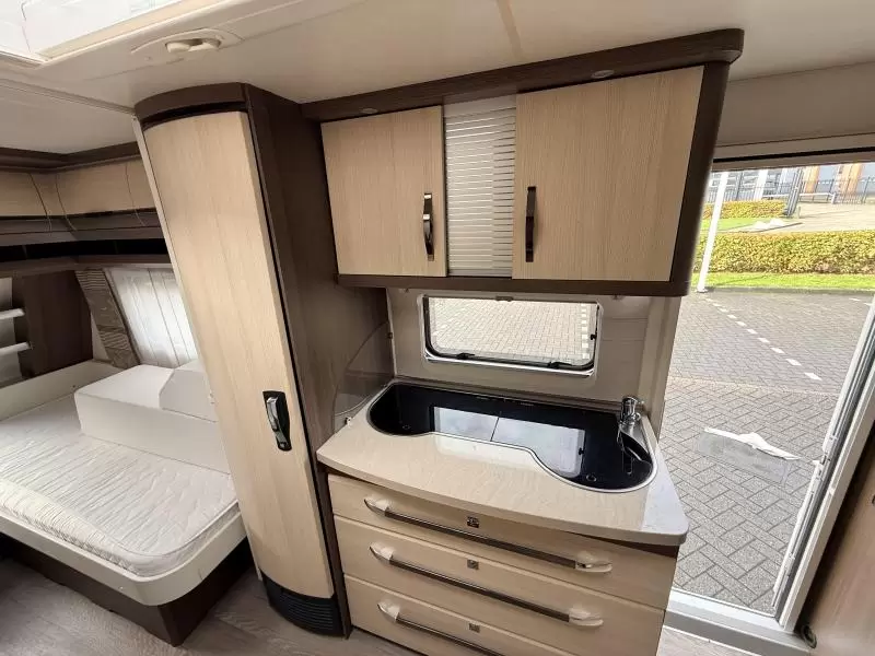 Doordat deze caravan met een hordeur is uitgerust, heeft u in de caravan geen last van insecten. Tijdbesparend en makkelijk is de Thule cassetteluifel, welke snel is uit- en ingedraaid. De stabilisatorkoppeling zorgt voor een merkbare verbetering van het weggedrag van deze caravan.