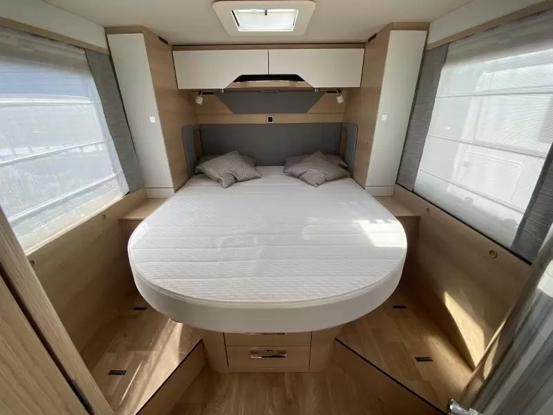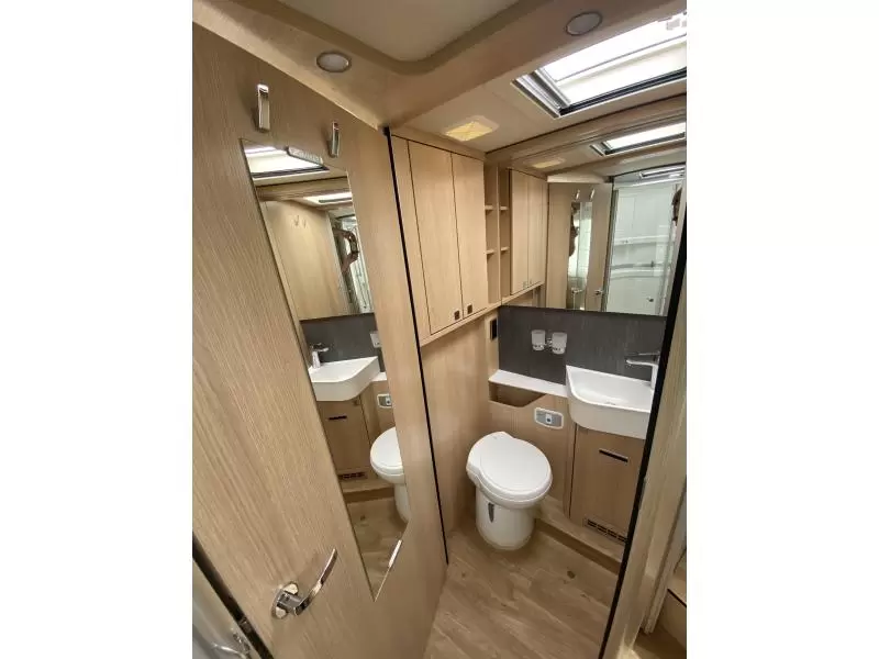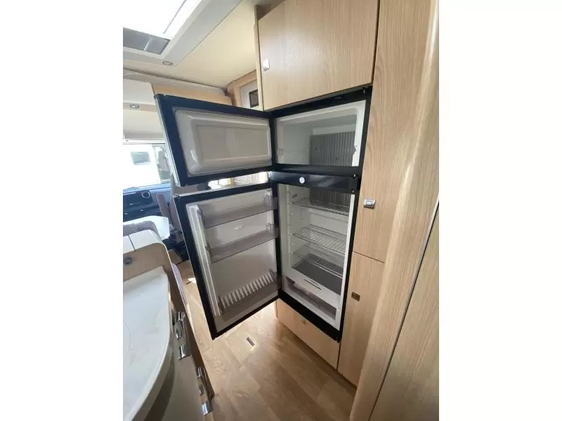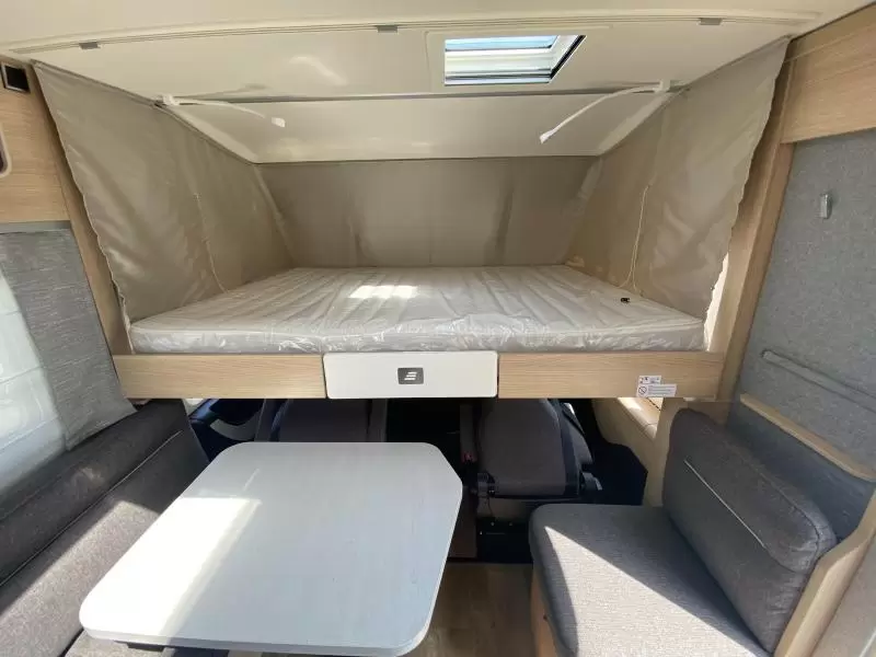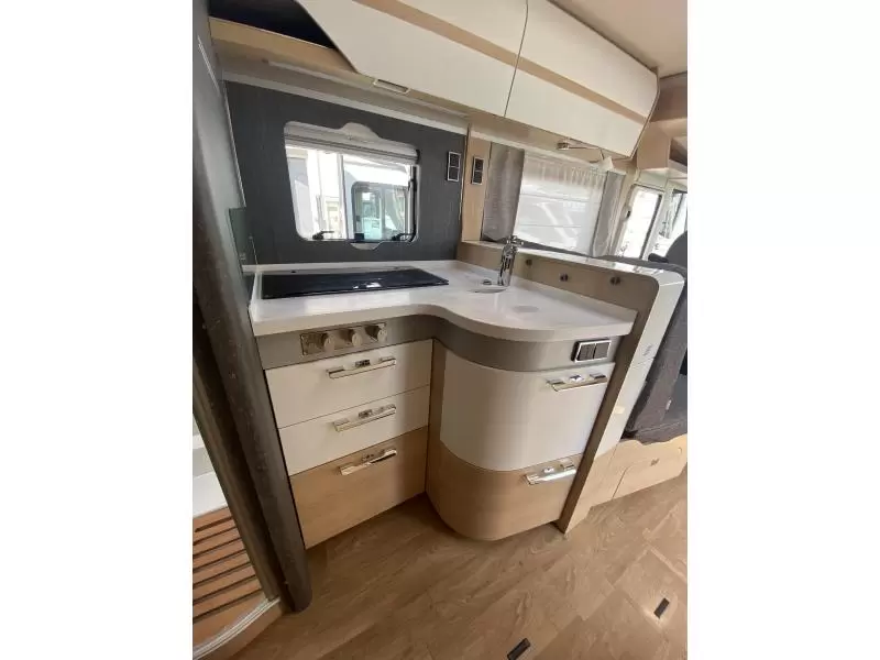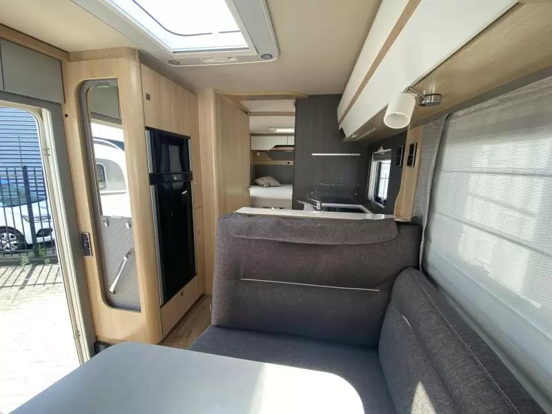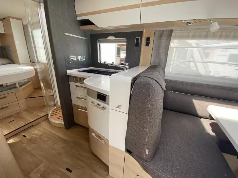 Een ideale plek om even rustig te zitten, te internetten of te spelen, wordt gevormd door de kleine zit. De centraal geplaatste middendinette biedt volop gelegenheid om gezellig samen te zitten. De keuken is in het midden van de camper geplaatst en beschikt over een 3-pits kooktoestel en gootsteen met kraan. De boiler, die in de camper is ingebouwd, voorziet u snel van warm water. De koelkast met vriesvak biedt voldoende ruimte voor heel uw voorraad.