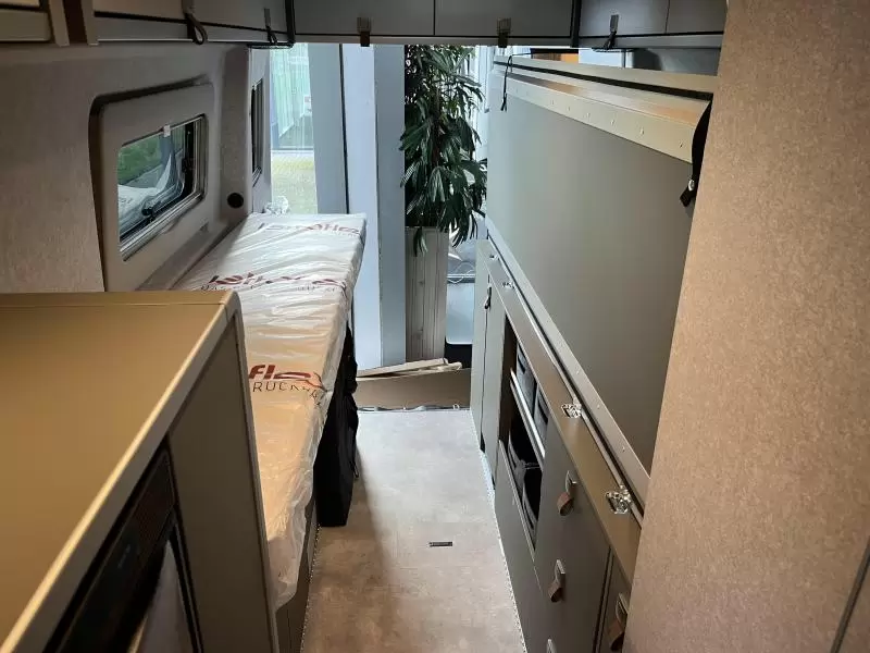 In de camper vindt u onder meer een ruim tweepersoons bed dat in de lengte is geplaatst. De aparte bedden bieden een makkelijke instap en een slaapgelegenheid voor 2 personen. De badkamer biedt gelegenheid om u aan de wastafel op te frissen en er is tevens een cassettetoilet. Naast het slaapgedeelte bevindt zich ook de douchegelegenheid.