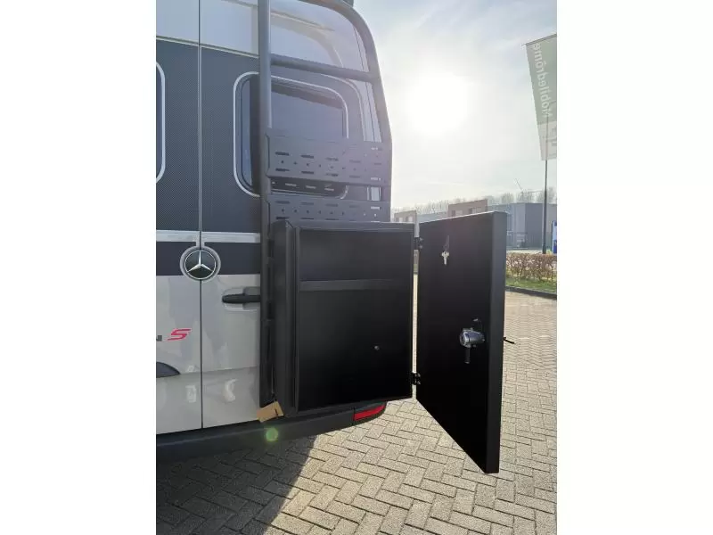 Luisteren naar uw favoriete muziek wordt mogelijk gemaakt door de ingebouwde audio-installatie. Doordat deze camper met een hordeur is uitgerust, heeft u in de camper geen last van insecten. Handig is ook de Thüle cassetteluifel, welke u in een paar tellen in en uit kunt draaien. Met de geplaatste zonnepanelen (95 Wh) verlaagt u niet alleen de energiekosten, maar bent u ook nog eens milieuvriendelijk bezig. Graag brengen wij nog de vaste afvalwatertank, de indirecte verlichting, de leeslampjes, de buitenlamp en de omvormer onder de aandacht, die de vrijheid van het camperen nog eens extra benadrukken.
