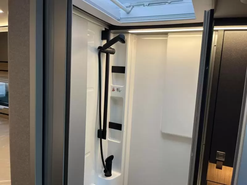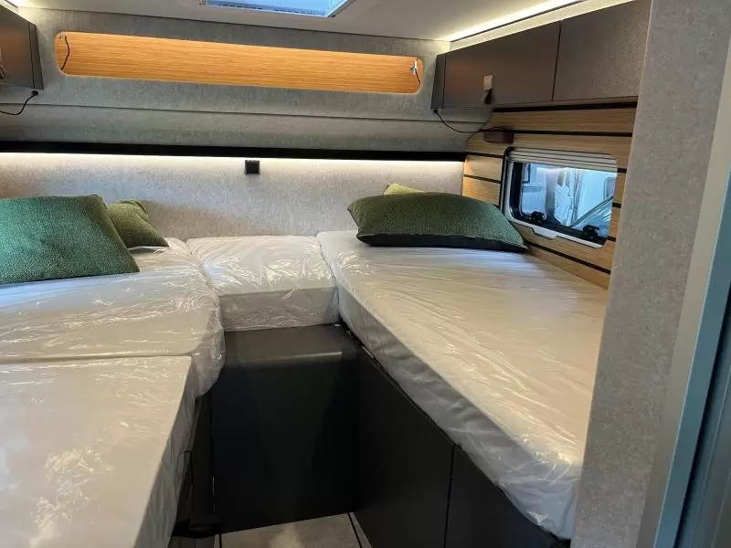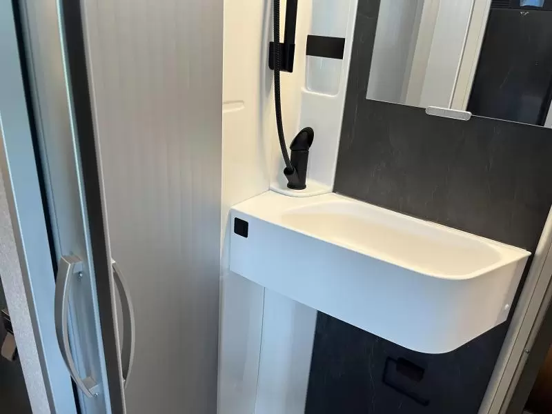 Slapen doet u op de 2 aparte bedden, die borg staan voor extra ruimte en een makkelijke instap. In de de badkamer vindt u niet alleen een wastafel maar ook een ingebouwd cassettetoilet. Er is bovendien een doucheruimte in de camper, zodat u van uw eigen douche gebruik kunt maken.