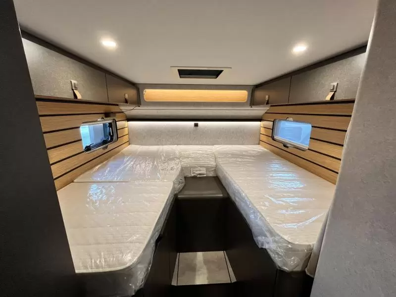 De twee enkele bedden zorgen voor een gemakkelijke instap. In de badkamer, waar deze camper over beschikt, vindt u een ingebouwd cassettetoilet en een wastafel.