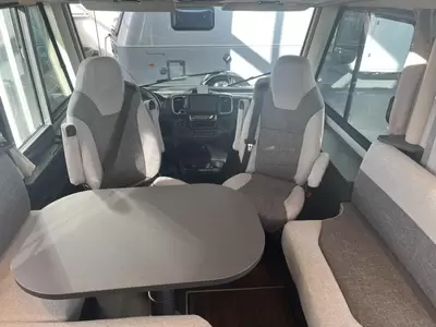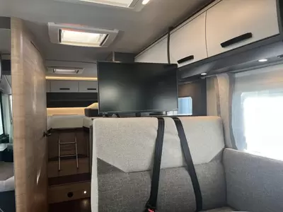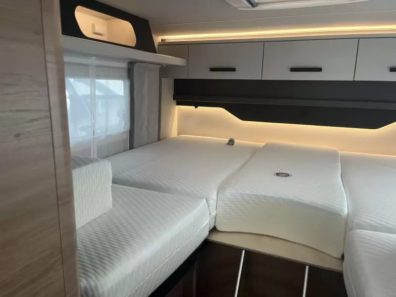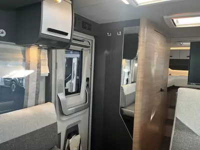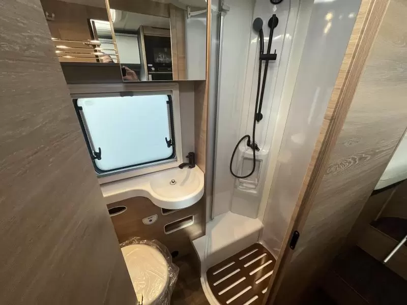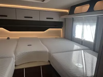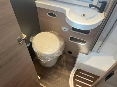 Een handige ruimtewinner is het tweepersoons hefbed, dat zich boven de zitgroep bevindt. De aparte bedden waarmee de camper is uitgerust bieden een ruime slaapplek aan 2 personen. In de badkamer, waar deze camper over beschikt, vindt u een ingebouwd cassettetoilet en een wastafel. In de camper kunt u ook douchen. Er bevindt zich een doucheruimte naast het slaapgedeelte.