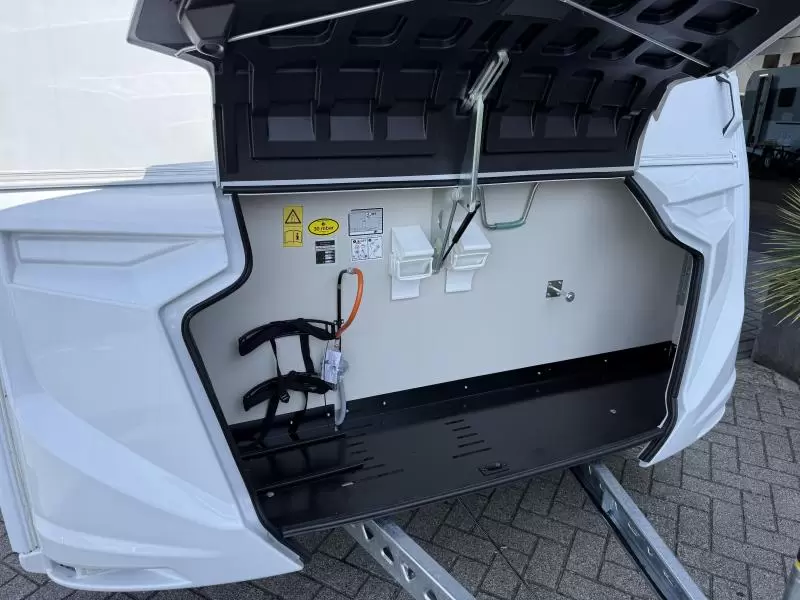 De caravan heeft een hordeur, zodat u in de caravan geen last van muggen en andere insecten heeft. De caravan is voorzien van een stabilisator voor een rustig en veilig weggedrag.