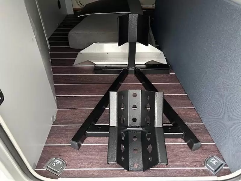 ook geschikt voor motor te vervoeren.Compleet met:1700 kg as.Apothekerskast.Oprijgoot motor.Motor drager.Sjorogen.