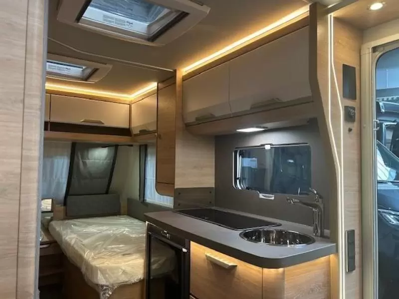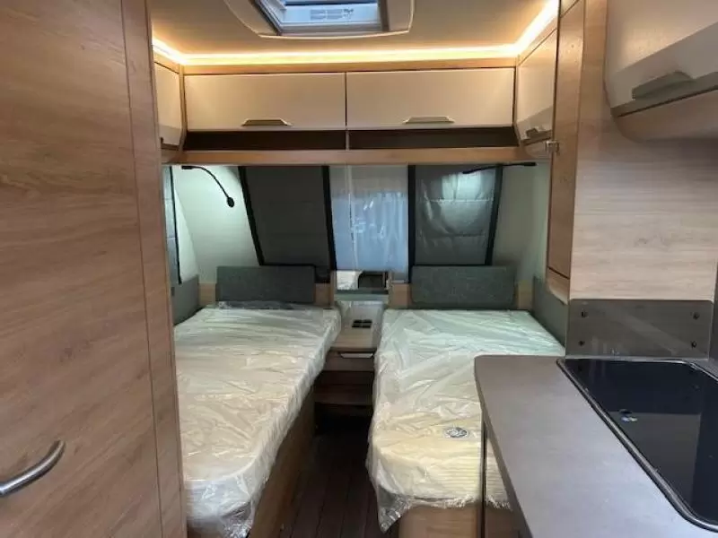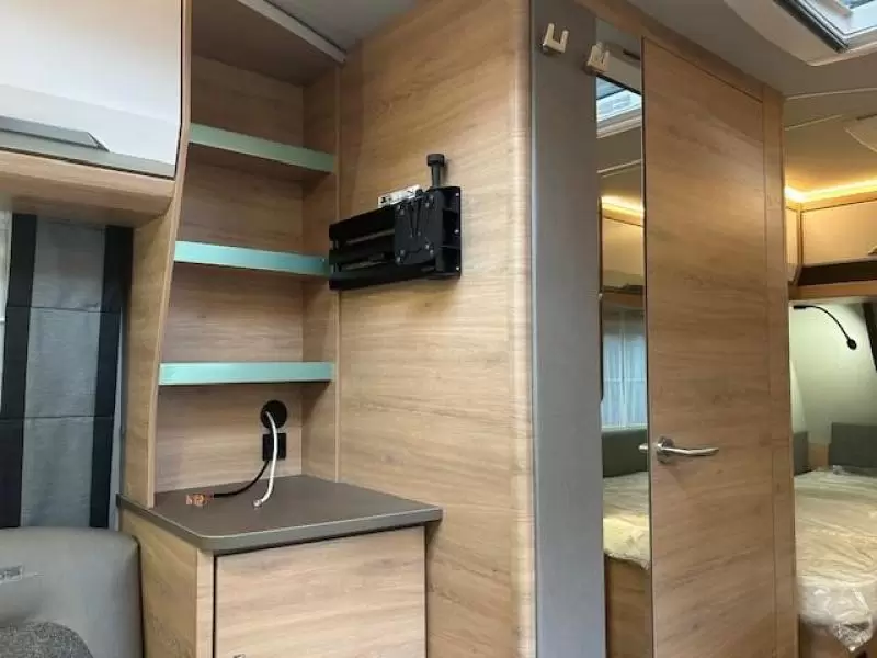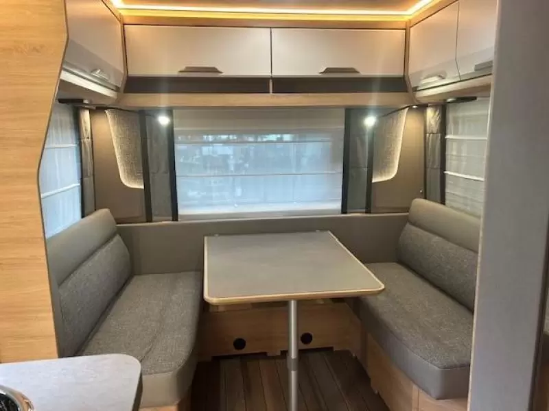 Het grote dakluik zorgt voor veel daglicht in de caravan, ook biedt het een prima ventilatiemogelijkheid. Een opvallende optie is de vloerverwarming, die ook op koudere dagen voor een comfortabel gevoel in de caravan zorgt.