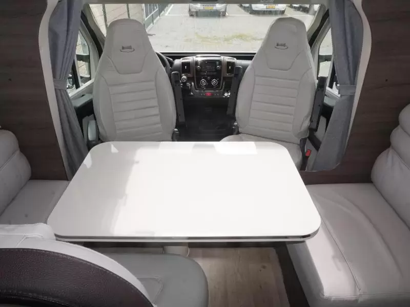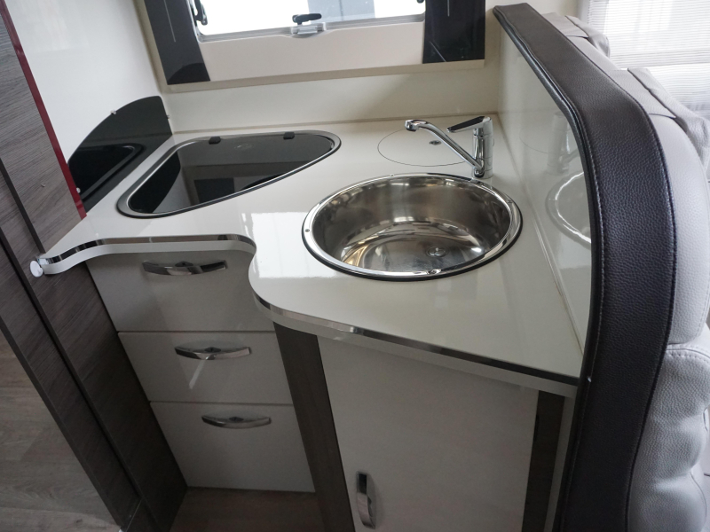 Een ideale plek om even rustig te zitten, te internetten of te spelen, wordt gevormd door de kleine zit. Door de ruime en comfortabele L-zit nodigt de camper uit voor gezellige avonden. Centraal in de camper bevindt zich de middenkeuken, uitgerust met een spoelbak, kraan en 3-pits kooktoestel. De 10 liter boiler, die in de camper is ingebouwd, voorziet u snel van warm water. De ingebouwde koelkast (142 liter) met vriesvak is uitgevoerd in een ruime uitvoering.