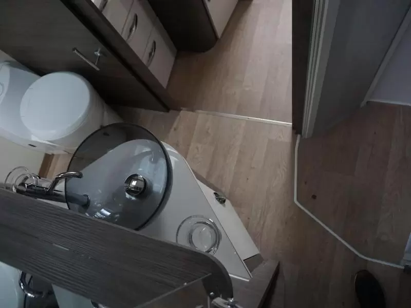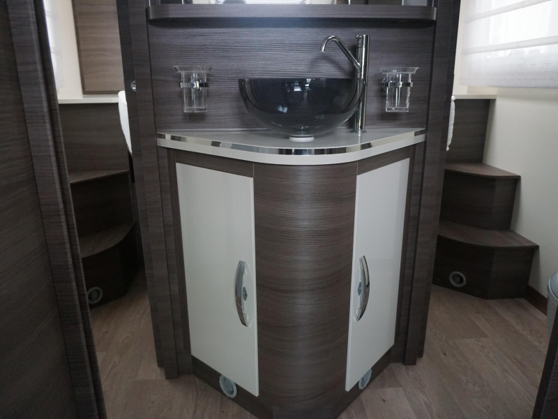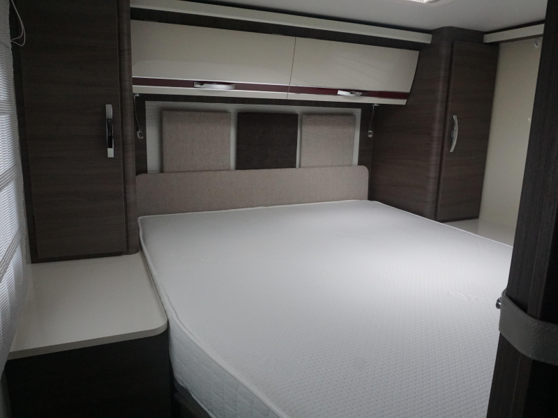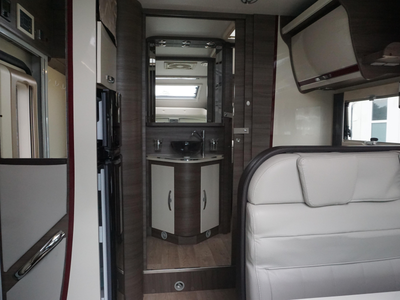 Het queensbed dat vrijstaat van de wanden geeft het gevoel van luxe en ruimte. In de de badkamer vindt u niet alleen een wastafel maar ook een ingebouwd cassettetoilet. Er is bovendien een doucheruimte in de camper, zodat u van uw eigen douche gebruik kunt maken.