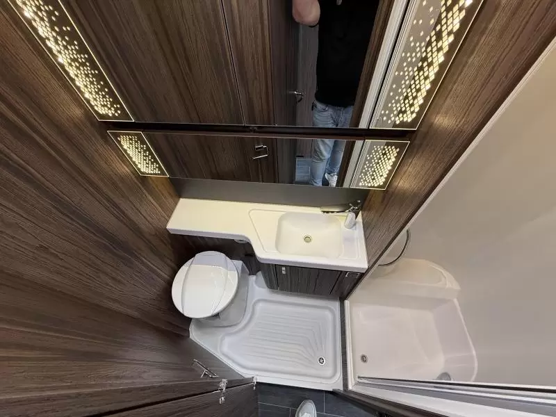 U zult de gemakkelijke instap van dit vrijstaande queensbed zeker waarderen. Behalve een cassettetoilet heeft de badkamer ook een wastafel, waar u zich lekker op kunt frissen. Douchen in de caravan is ook mogelijk, er is een doucheruimte aanwezig.