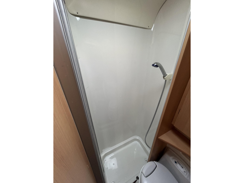 De camper is uitgerust met een Frans bed, een in de lengte geplaatst tweepersoons bed. Behalve een cassettetoilet heeft de badkamer ook een wastafel, waar u zich heerlijk op kunt frissen. Er is bovendien een doucheruimte in de camper, zodat u van uw eigen douche gebruik kunt maken.