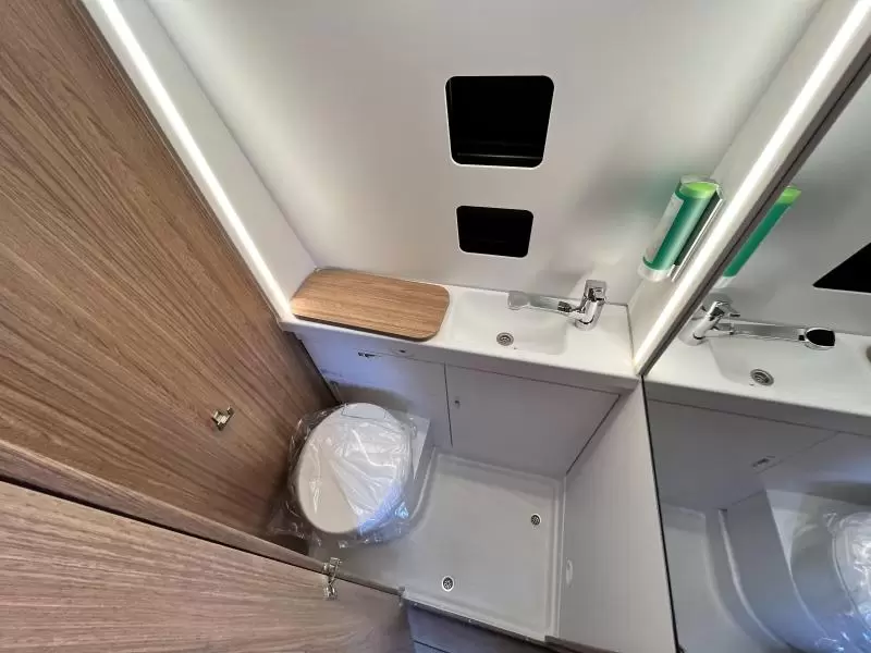 In de badkamer vindt u een wastafel om u op te frissen, alsmede een ingebouwd cassettetoilet. Wilt u zich onderweg opfrissen? Dat kan gezien de camper voorzien is van een douchecabine.