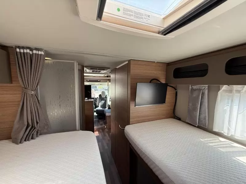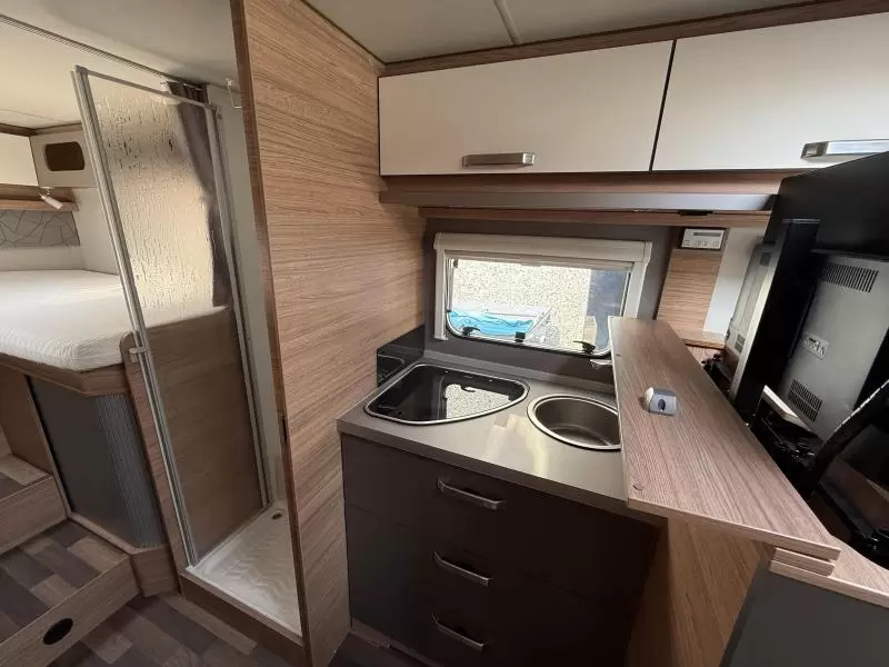 Het hefbed bespaart enorm veel ruimte en biedt plaats aan 2 personen. De aparte bedden waarmee de camper is uitgerust bieden een ruime slaapplek aan 2 personen. U kunt in deze camper genieten van een uitstekende nachtrust dankzij de lattenbodems en de traagschuimmatrassen op de bedden. In de badkamer kunt u zich heerlijk opfrissen bij de wastafel. Verder is er ook een cassettetoilet ingebouwd. Wilt u zich onderweg opfrissen? Dat kan gezien de camper voorzien is van een douchecabine.