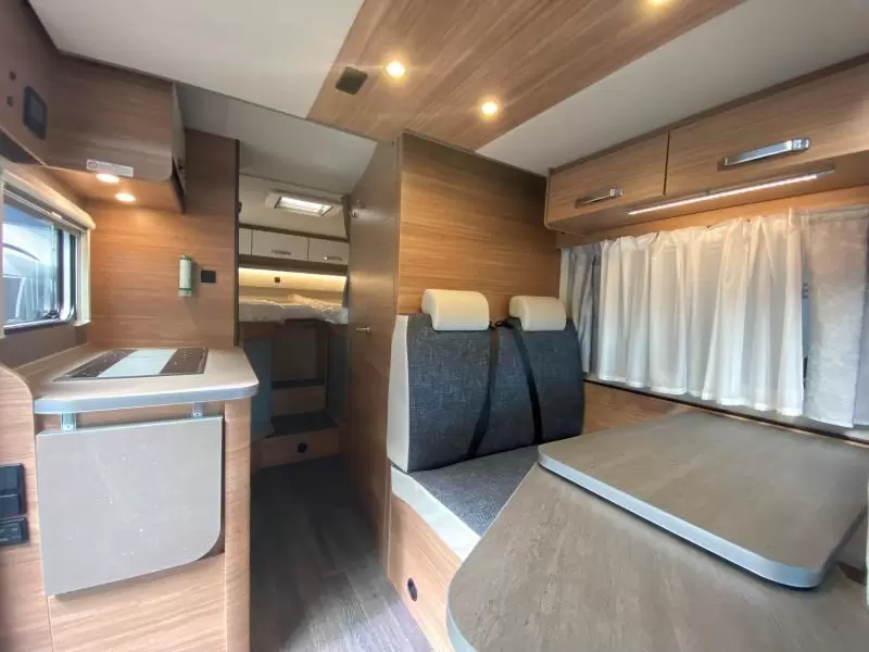 Je bespaart enorm veel ruimte dankzij het hefbed, waarin 2 personen een slaapplaats vinden. In de 2 aparte bedden heeft ieder zijn eigen slaapplek. Je kunt je heerlijk opfrissen bij de wastafel in de badkamer. Daar is ook een cassettetoilet ingebouwd. Er is bovendien een doucheruimte in de camper, zodat jij van jouw eigen douche gebruik kunt maken.