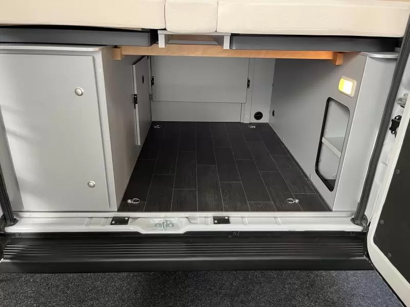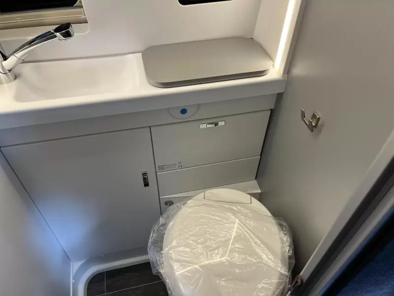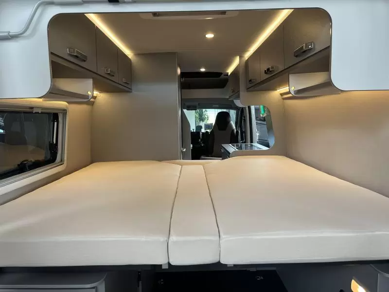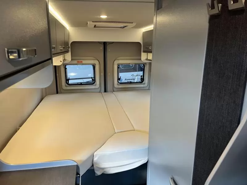 In de camper vindt u onder meer een ruim tweepersoons bed dat in de lengte is geplaatst. De twee aparte bedden waarover de camper beschikt, bieden een gemakkelijke instap. In de comfortabele badkamer van deze camper vindt u behalve een wastafel ook een ingebouwd cassettetoilet. In de camper kunt u ook douchen. Er bevindt zich een doucheruimte naast het slaapgedeelte.