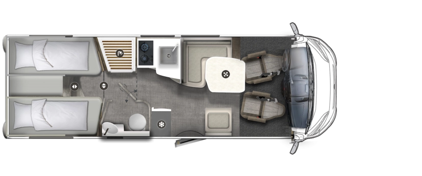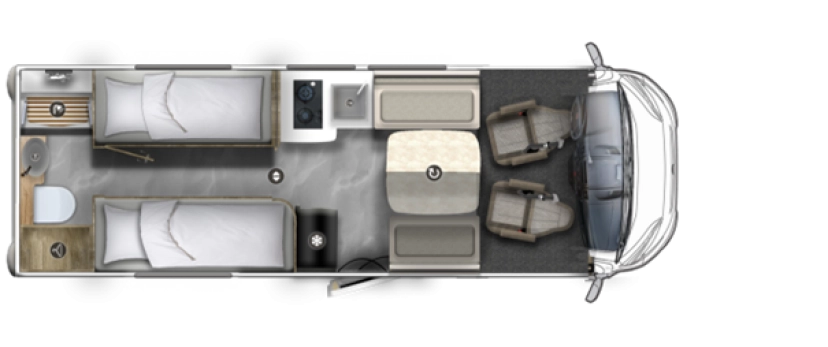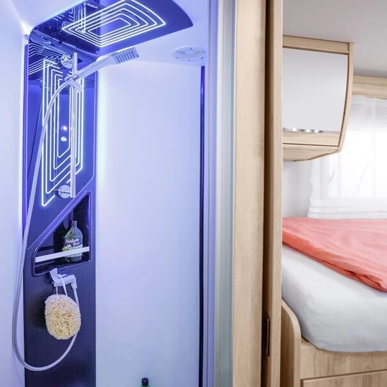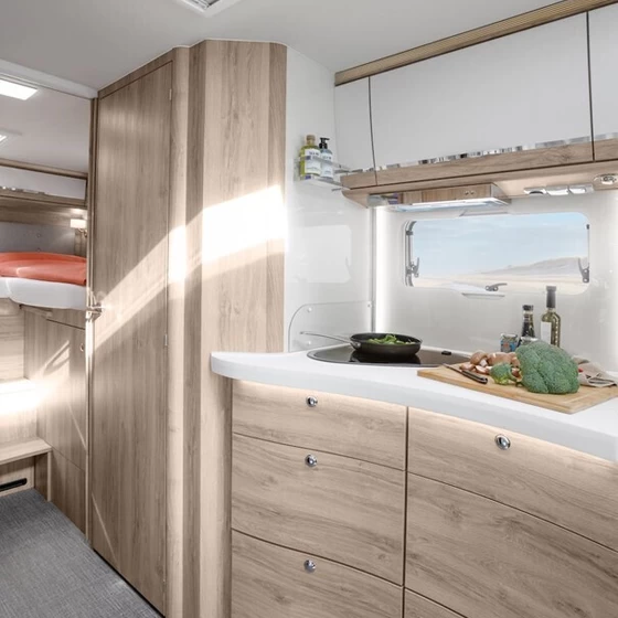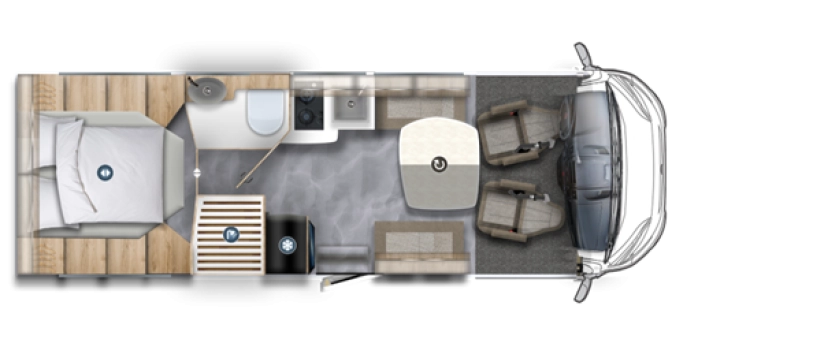 De Integra Line combineert een winter‑vaste, verwarmde dubbele vloer met geïsoleerde tanks, een panoramische voorruit voor een fantastisch uitzicht en een geïntegreerde leefruimte die het gevoel van thuis onderweg versterkt. Dankzij de compacte externe afmetingen onder 2,90 m hoogte blijft hij wendbaar én royaal tegelijk.