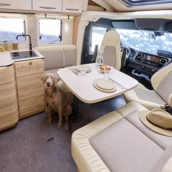 Binnenin combineert de Profila T MB een stijlvolle woonruimte met praktische indelingen, waardoor je zowel onderweg als op locatie een hoog woon- en leefcomfort ervaart. Door de diverse indelingen met achterste bedden en royale garage is deze camper flexibel inzetbaar voor koppels én kleine gezinnen.