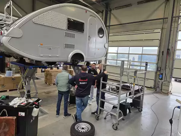 Tijdens het event kregen de deelnemers een uniek kijkje achter de schermen van onze werkplaats. In kleine groepjes gingen zij langs bij onze monteurs, die lieten zien wat er allemaal komt kijken bij het onderhoud, de opbouw en de reparatie van campers en caravans. Van elektrotechniek tot installatietechniek, van timmerwerk tot carrosserietechniek – alles kwam voorbij. Bezoekers konden volop vragen stellen en ervaren hoe veelzijdig en uitdagend het vak van monteur bij Mobile Drôme is.